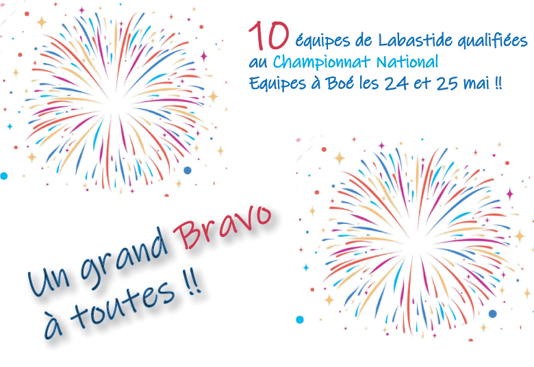 11 équipes sur le podium et 10 qualifiées au National les 24 et 25 mai à Agen : Masse cho2, Pré Excellence, Duo Excellence, Excellence 2 et 3, Duo National, et Nationale 4. Un grand bravo, et fiers de toutes nos équipes !
